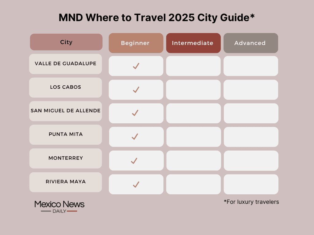 Hemos reunido una mesa que resume qué destino se adaptaría a los viajeros en función de su experiencia en México.