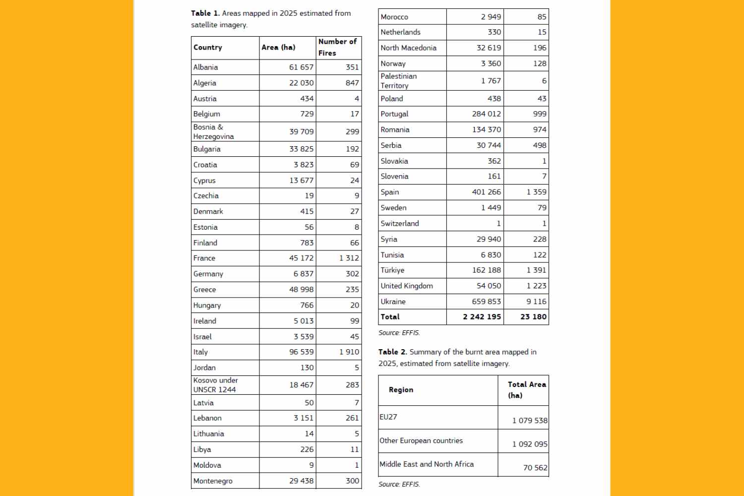 El seguimiento de incendios hoy en día es mucho más preciso que en el pasado. El sistema EFFIS utiliza imágenes de satélite de alta resolución y es capaz de mapear aproximadamente el 95% de las superficies quemadas.. Desde 2018 también es posible detectar incendios menores a 30 hectáreas, mejorando la calidad de los análisis. Pero la tecnología no es suficiente para compensar la intensificación del fenómeno. En 2025 la superficie total quemada aumentó un 20% respecto a 2024 y es casi dos veces y media superior a la de 2023.