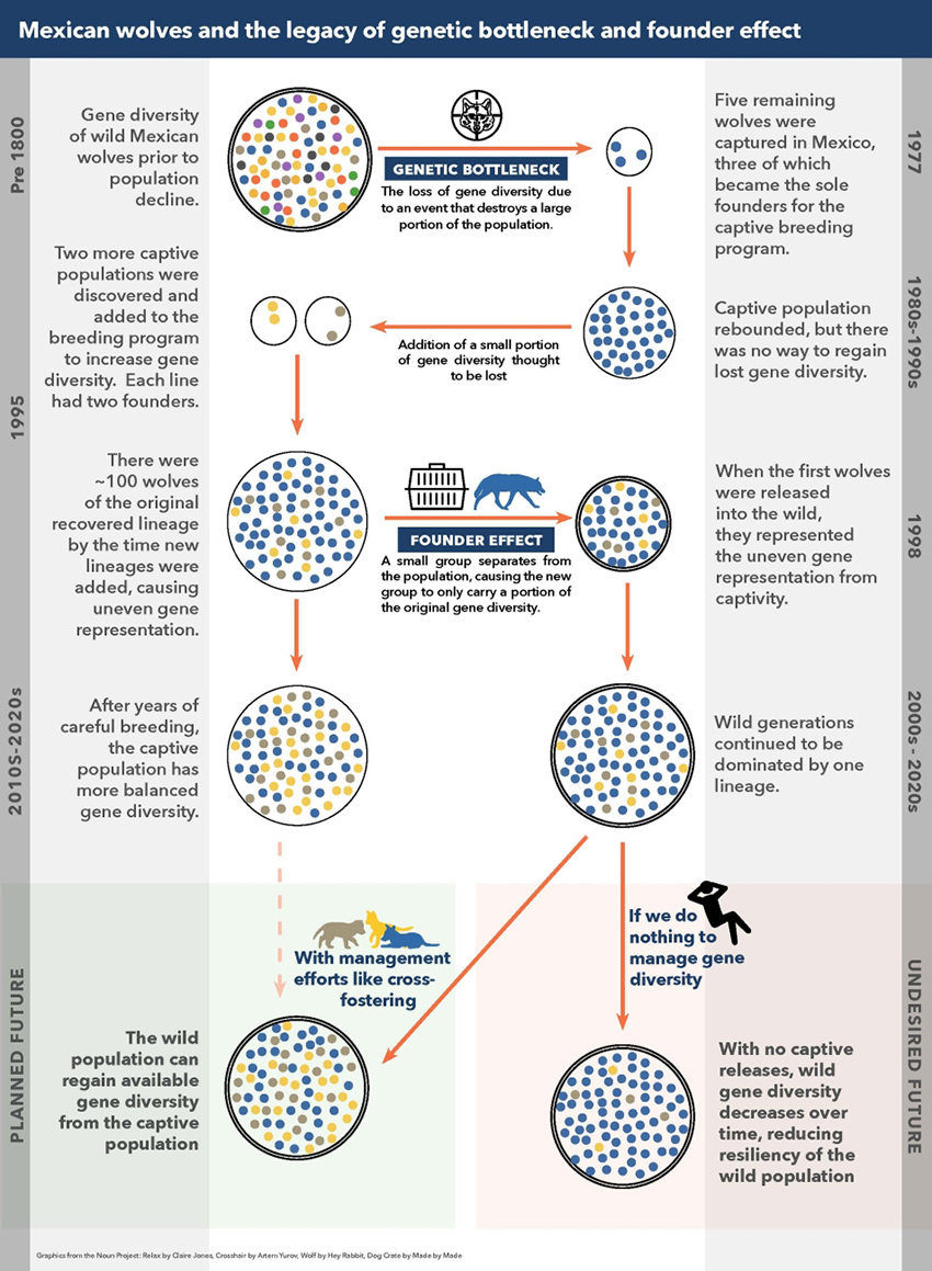 Esta subespecie es la más distinta genéticamente entre sus parientes caninos. También es endogámico debido a su casi extinción en las últimas décadas: toda la población desciende de solo siete individuos, lo que hace que los lobos mexicanos sean más susceptibles a la enfermedad y menos capaz de adaptarse a su entorno cambiante.